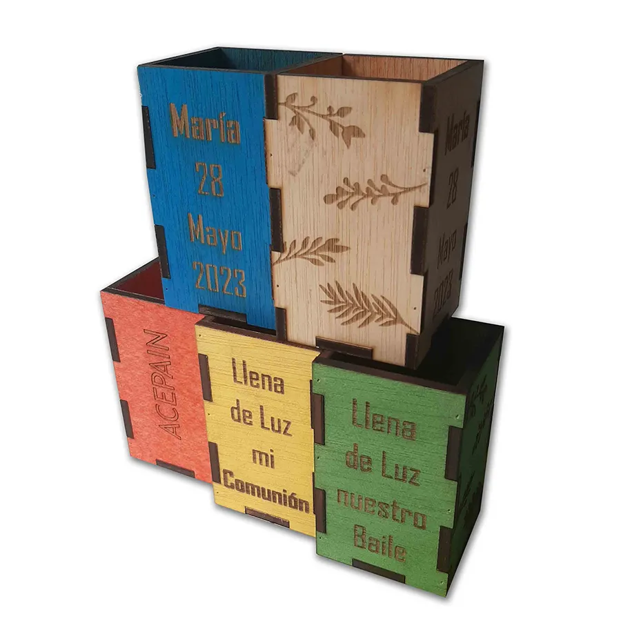 Cubilete porta lápices/Bengalas/etc.: Cubilete de madera versátil para almacenar lápices, bengalas u otros objetos pequeños.