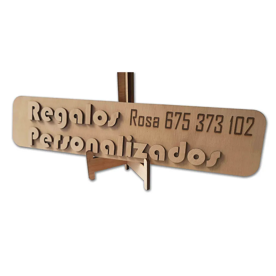 Cartel en Madera 3D Personalizado: Cartel tridimensional fabricado en madera y personalizable según tus preferencias.