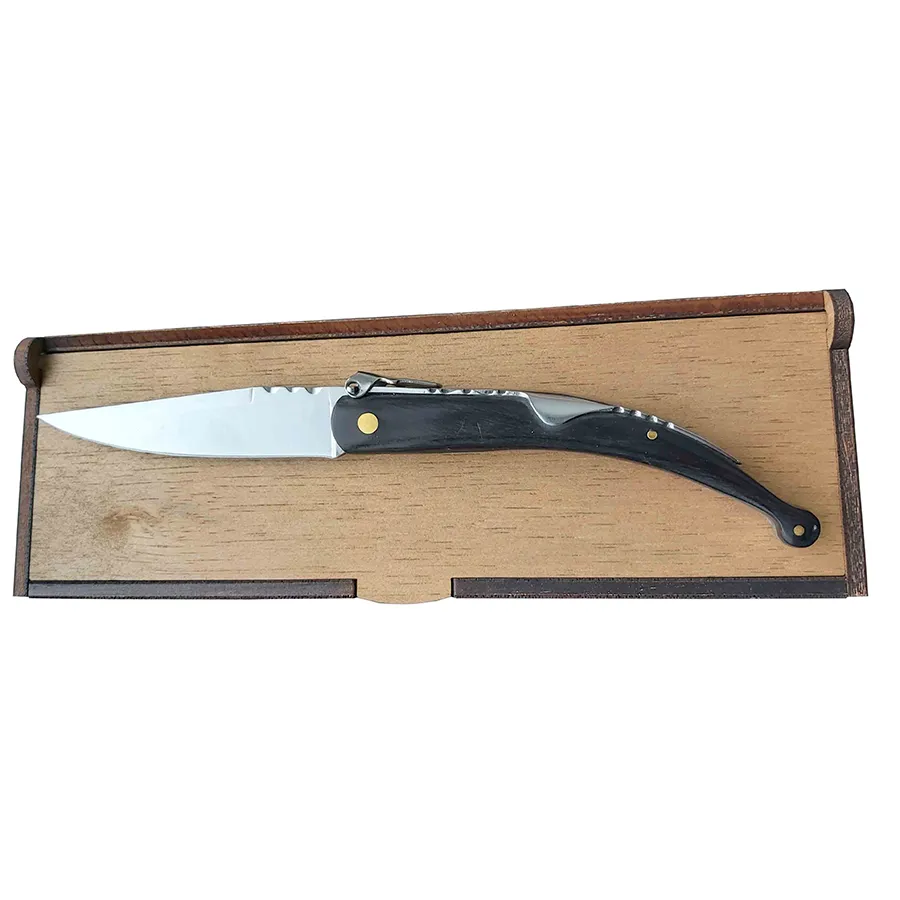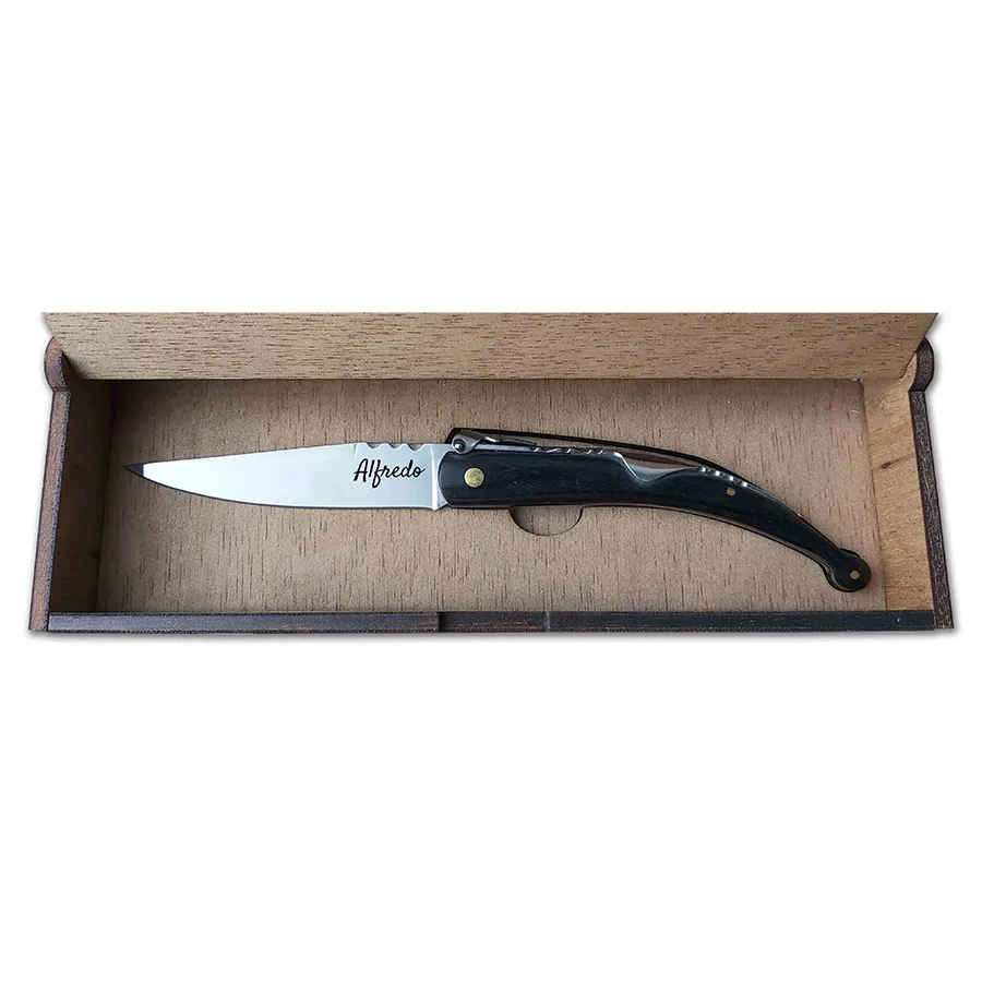 Navaja Bola Caja Madera Universal: Navaja con diseño de bola en una caja de madera de estilo universal.